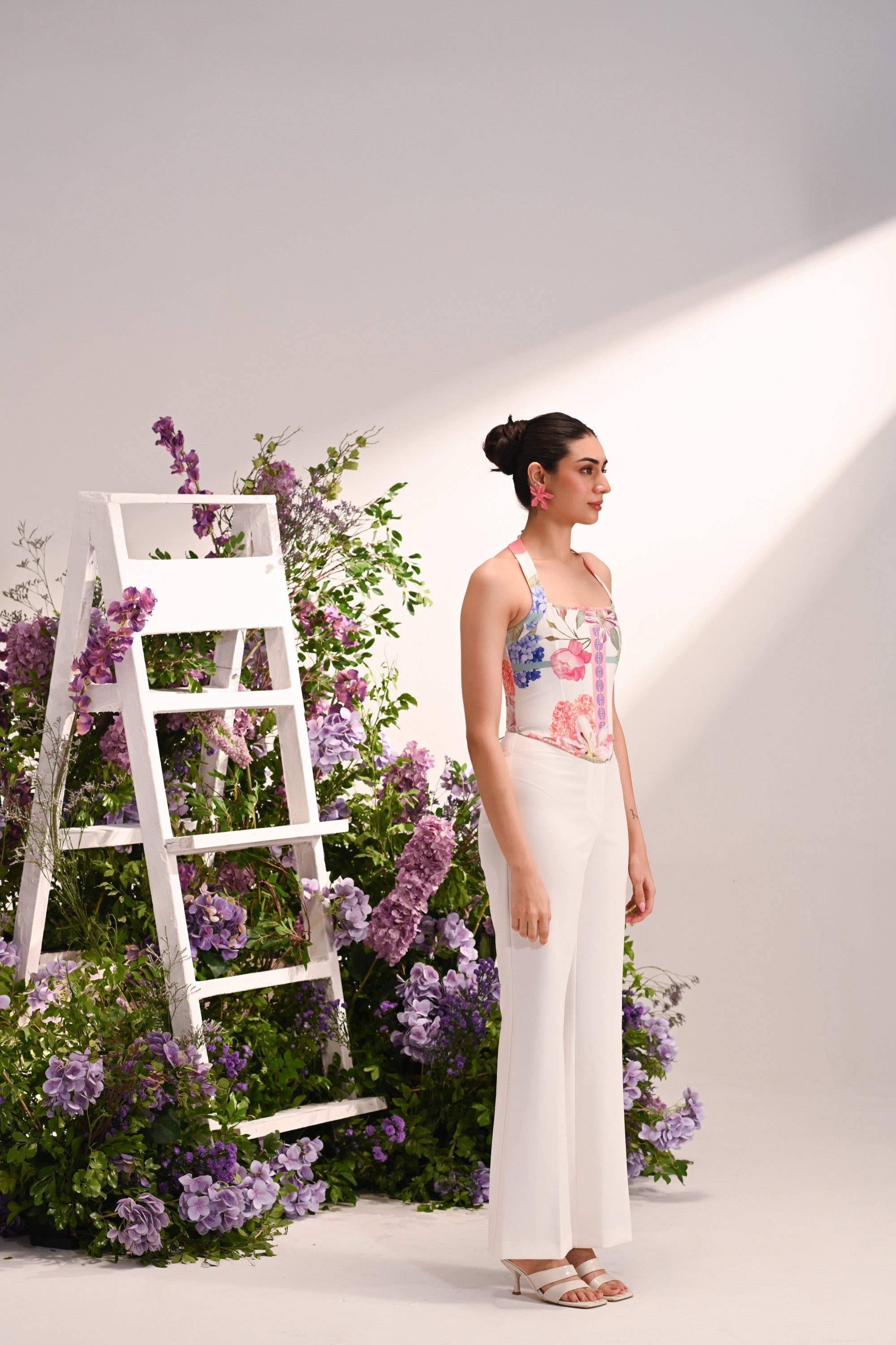 short printed corset, & solid pants