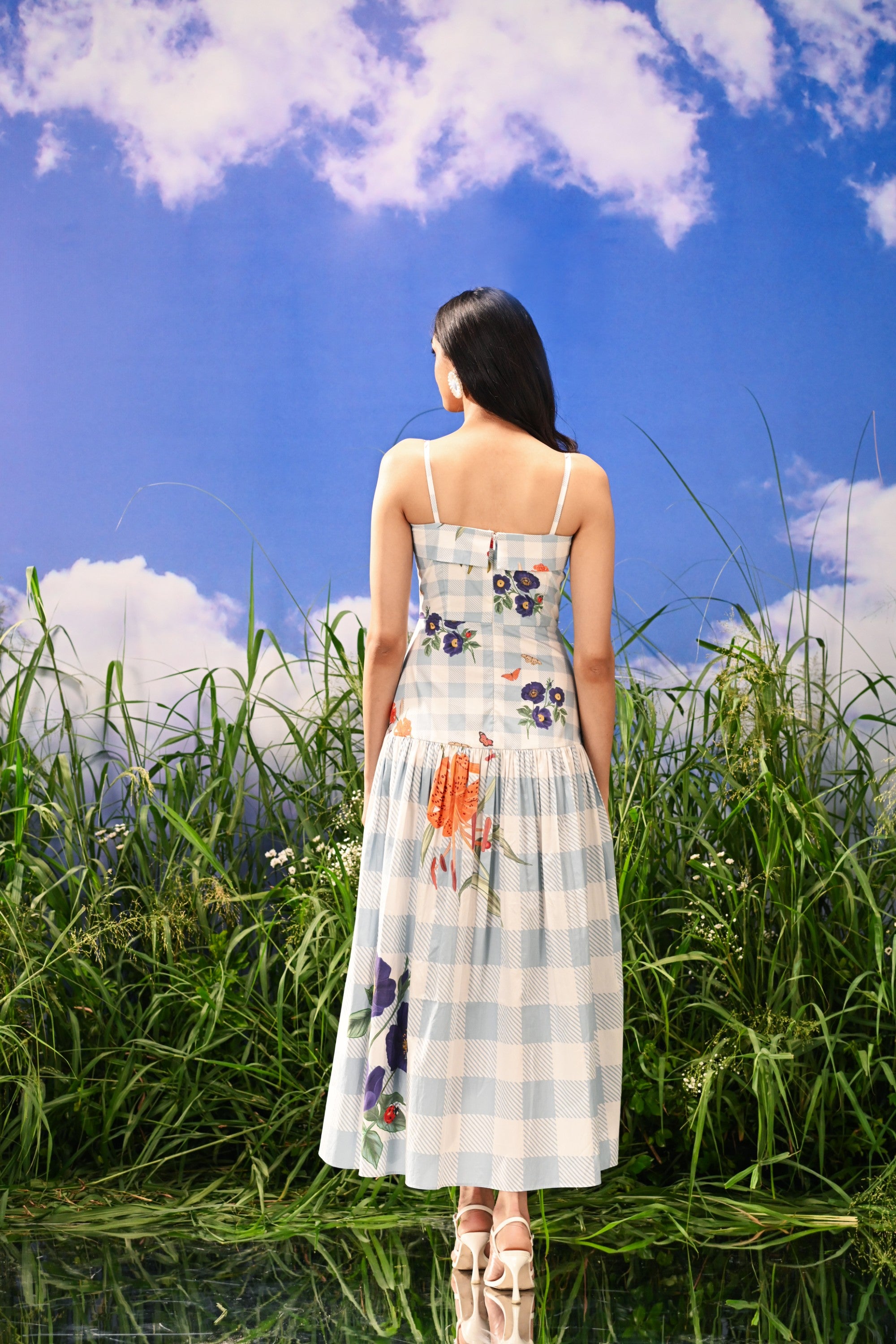 The Aurielle Dress is a romantic ode to effortless style. This flowy maxi dress in floral gingham captures the spirit of carefree elegance, blending soft femininity with timeless charm. Crafted from lightweight cotton, it moves gracefully with every step, perfect for sun-drenched days, garden gatherings, or leisurely escapes where comfort meets quiet sophistication.