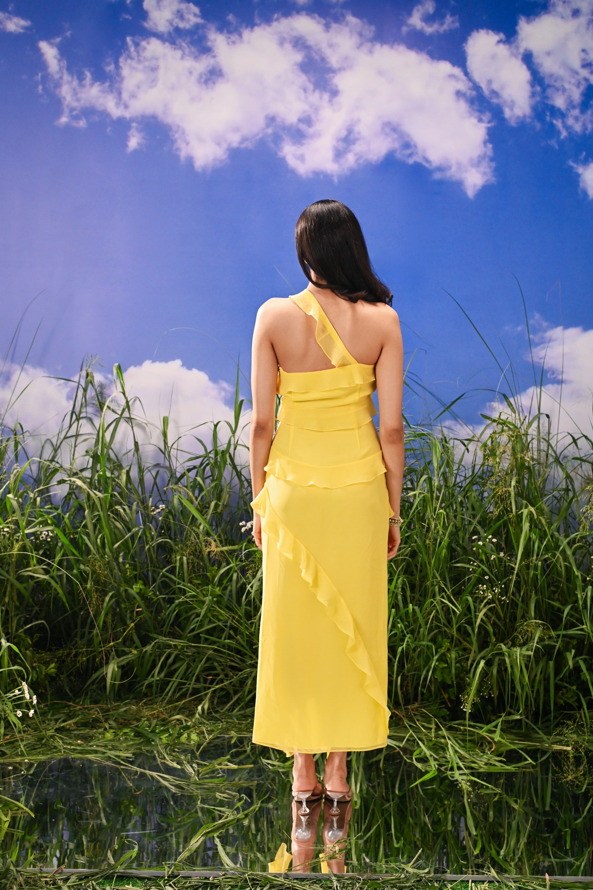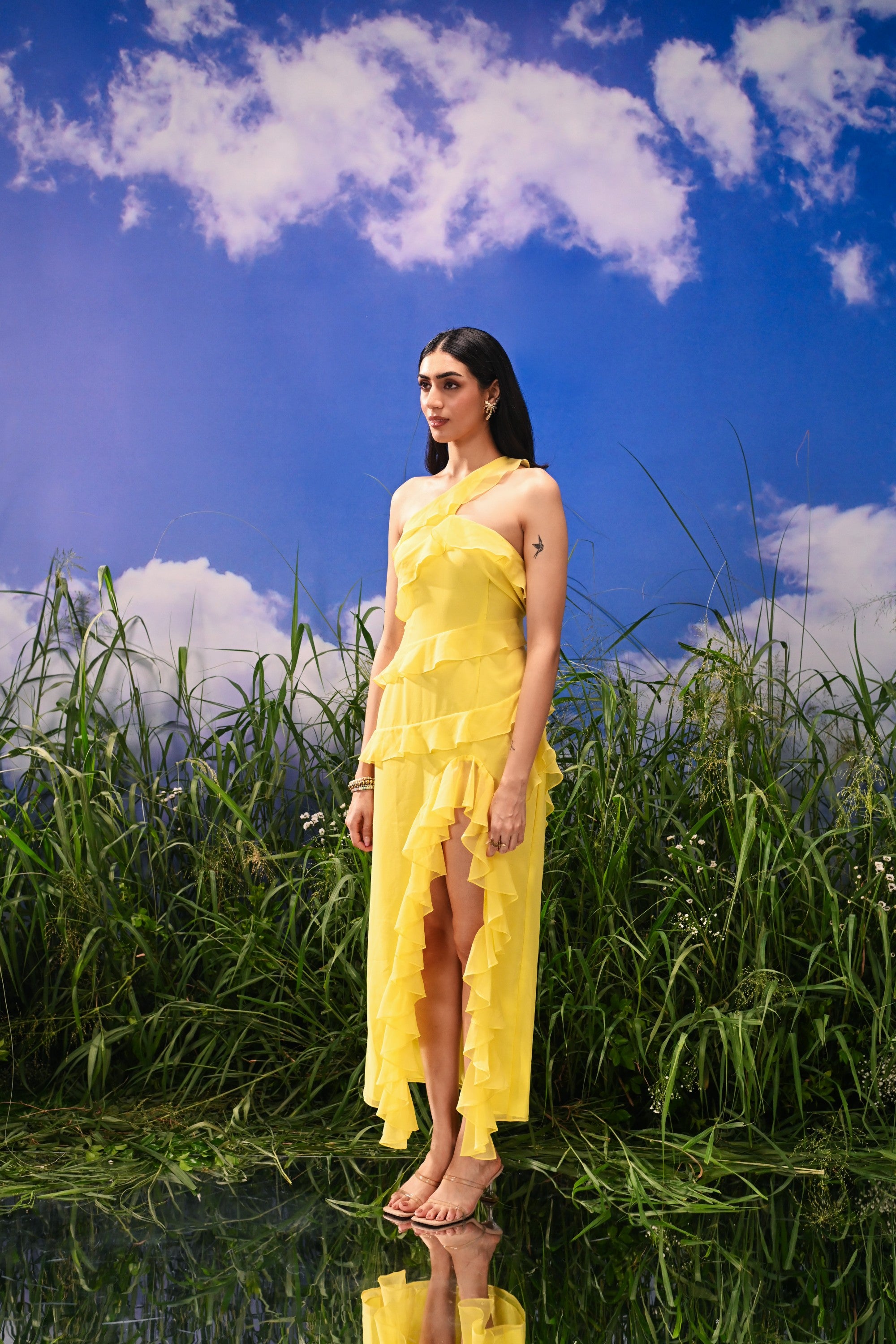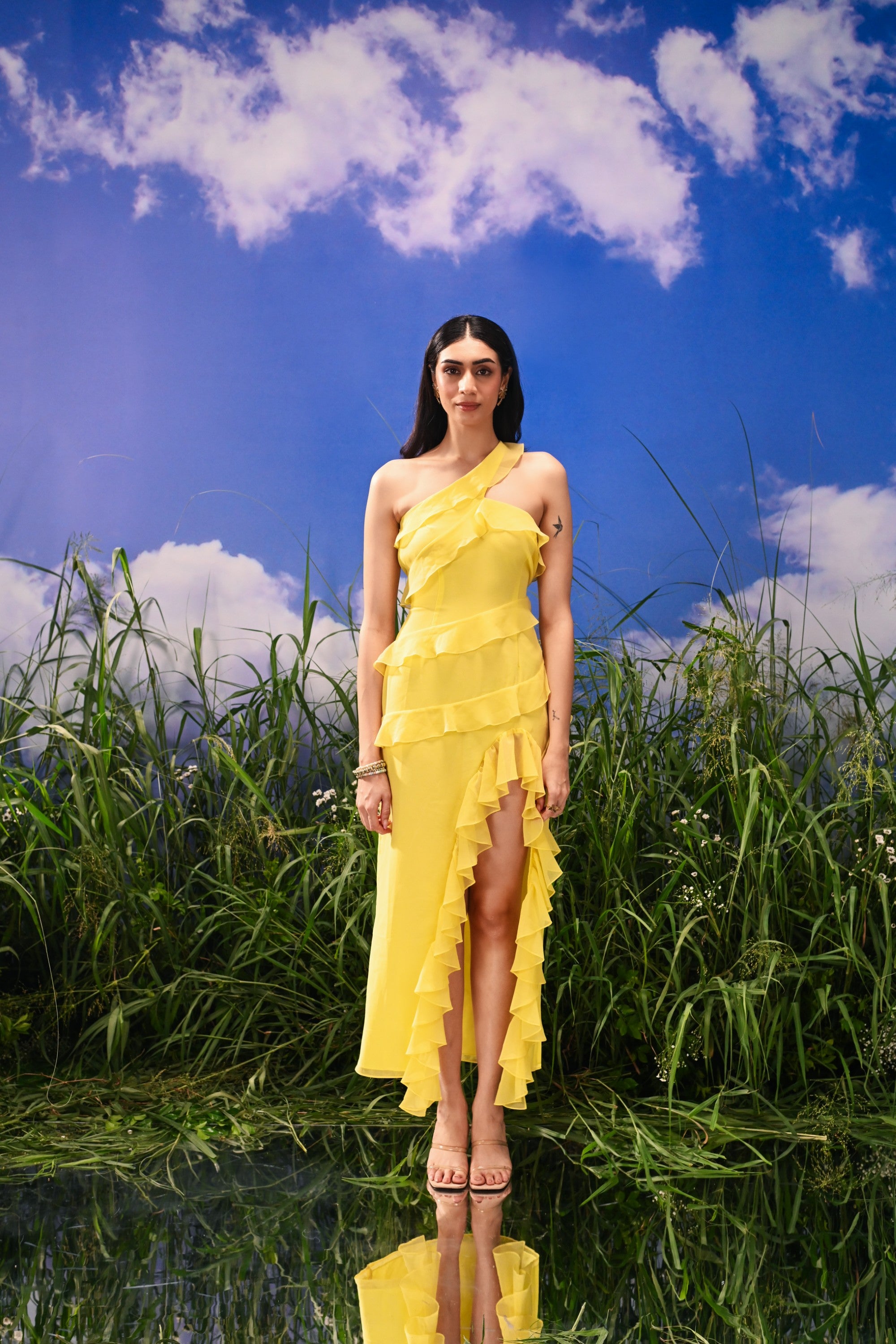 The Soleila Dress embodies breezy sophistication with a hint of allure. Crafted from flowy georgette, it features a graceful slit detail that adds movement and charm to its timeless silhouette. Light, romantic, and effortlessly refined, it’s the perfect choice for moments that call for understated elegance and fluid femininity.